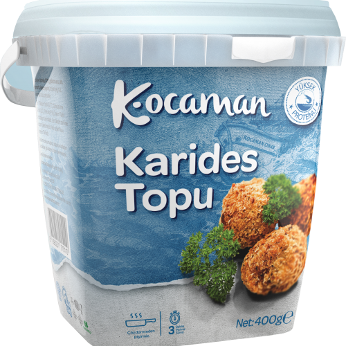 Karides (%70), Yumurta, Sarımsak, Tuz, Stabilizör (Sodyumtrifosfat), Kaplama Malzemesi [Bugday Unu, Su, Maya, Dogal Renklendirici (Paprika Ekstratı, Turmeric)], Bitkisel Yag (Palm).